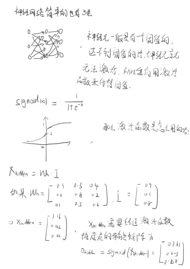 然后再用隐藏层的输出当做输出层的输入,在和这部分的权重矩阵相乘就得到了最终的输出。