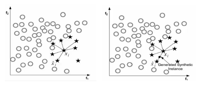 SMOTE算法就是无中生有,就是把欺诈行为的数量增加到和正常行为一样,原则: