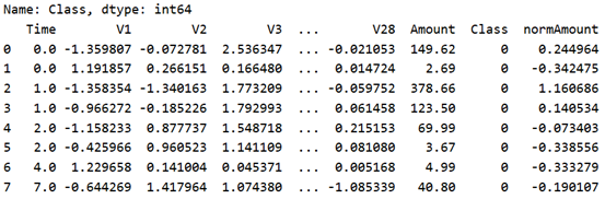 y = data.loc[:, data.columns == 'Class']